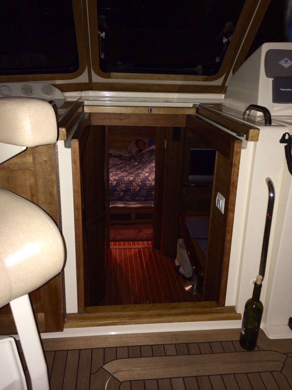 Okay – that’s it. We just had dinner (stay tuned for a post from Amy on her experiences in the galley), the genny is shutting down and so am I. Amy is already in bed…