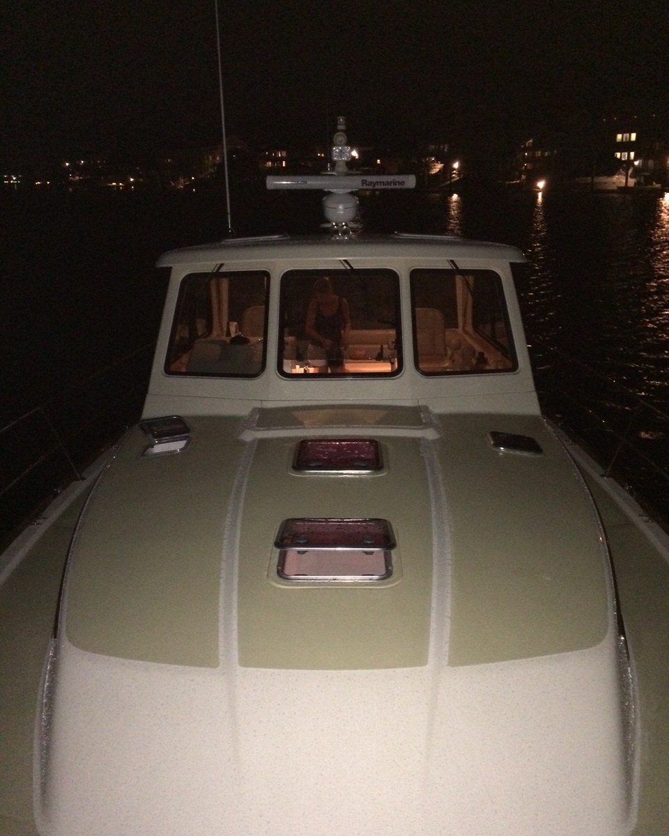 And of course, we also had some fun times throughout the day. This morning we passed an enormous silver Pershing megayacht in the canal. When I radioed the captain for a pass, I told him he had a sweet ride, and he replied that the same was true for us! Then about two hours later, as we were slogging our way though the Neuse River, that same Pershing flew by us doing at least 30 knots. Probably more. By then we had reduced to a bashing 8.7 knots. Ah the life.